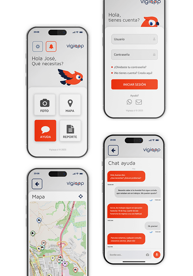 Vigiapp es una aplicación móvil diseñada para que los vecinos se conecten de manera inmediata con su municipio. Con un solo toque, los residentes pueden reportar incidentes y activar la respuesta del equipo de seguridad comunal. Simple, rápido y al servicio de la gente.